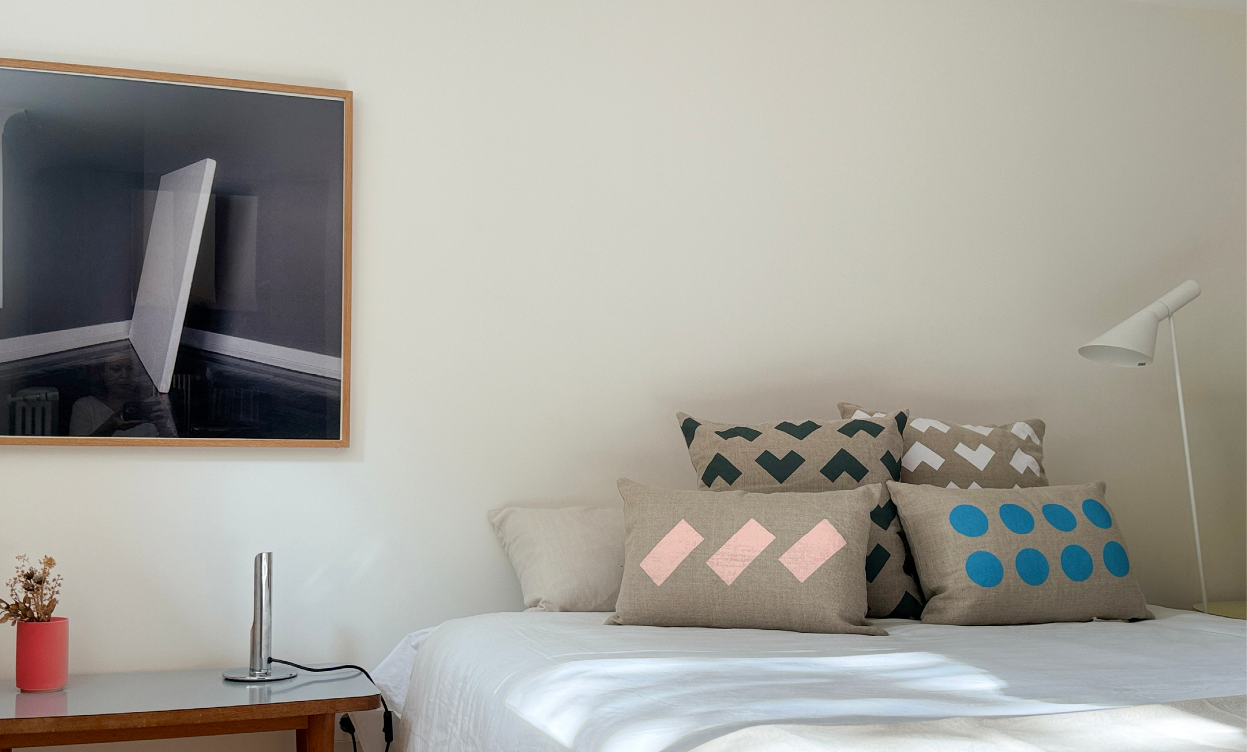 Throw pillows made of pure linen and manually silkscreened.